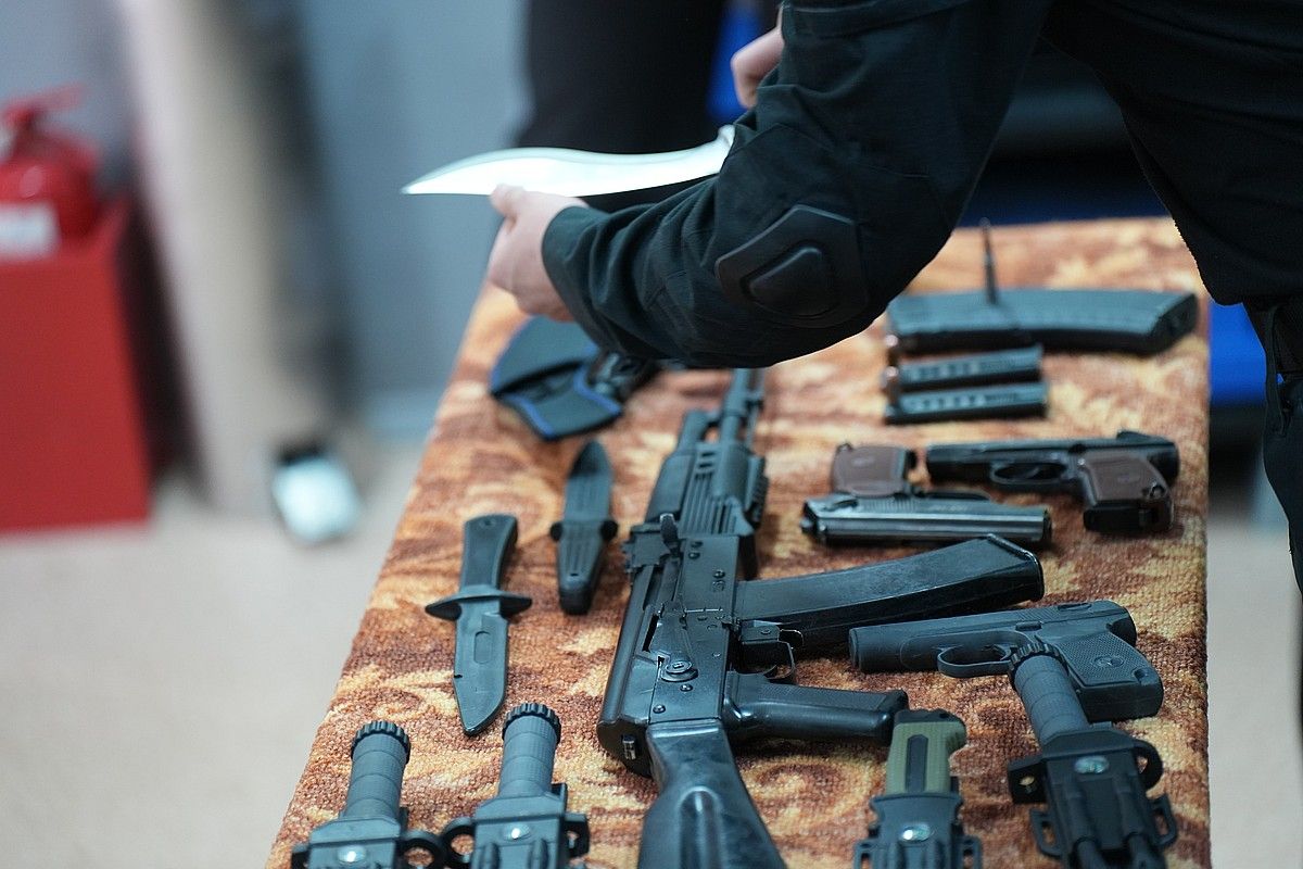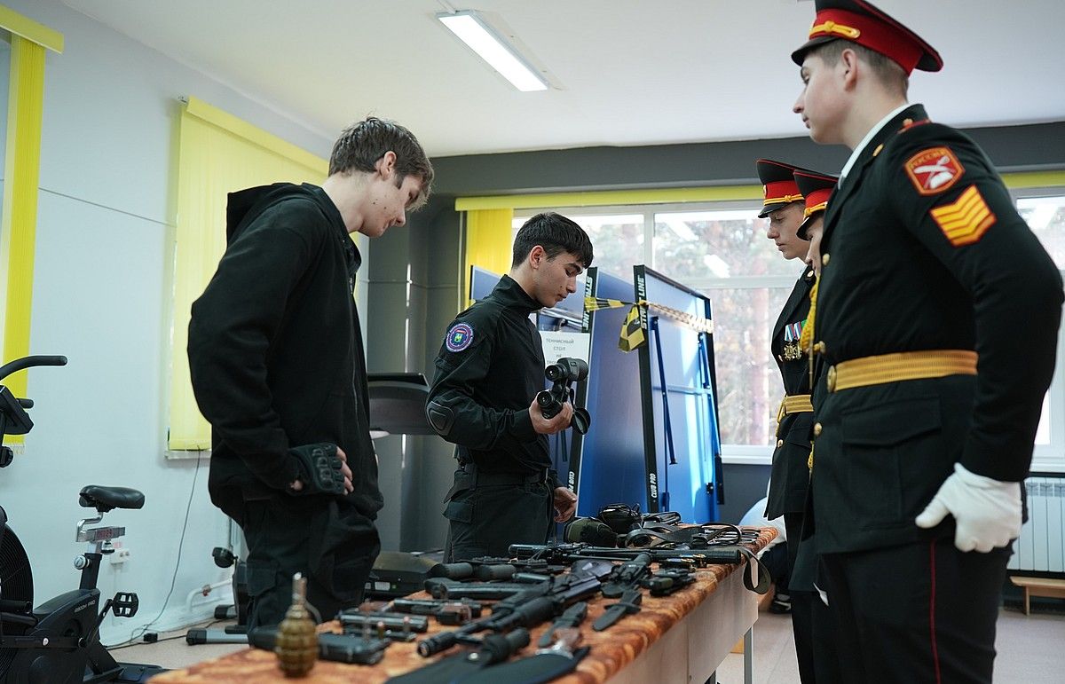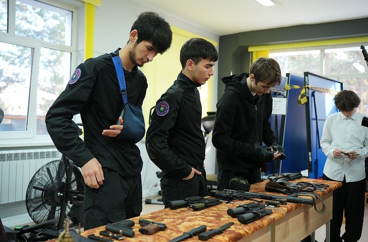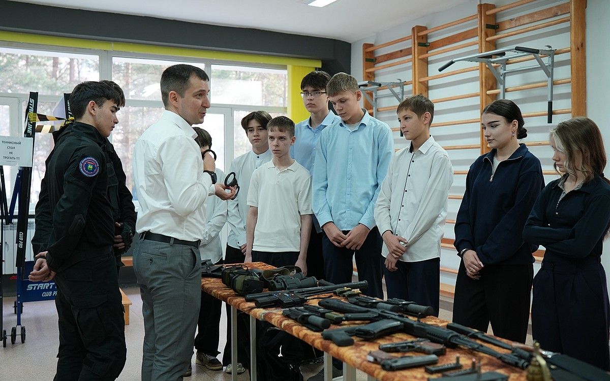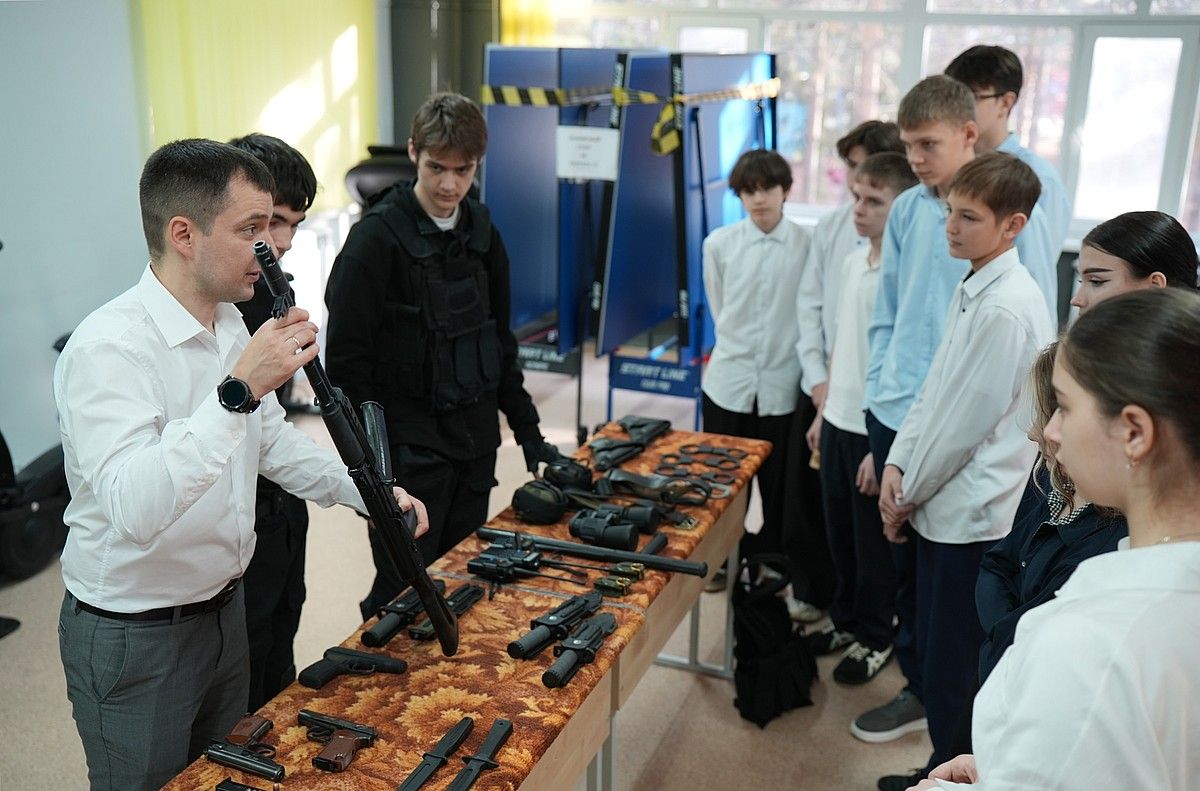 Студенты второго курса кафедры «Правоохранительная деятельность» познакомили школьников со специальным оборудованием: учебными гранатами, пистолетом Макарова, автоматом АК74М, холодным тактическим оружием, а так же рассказали об их назначении.