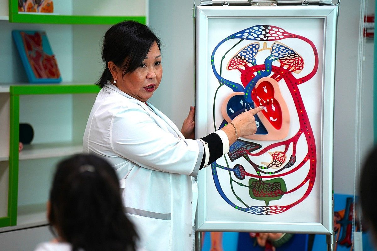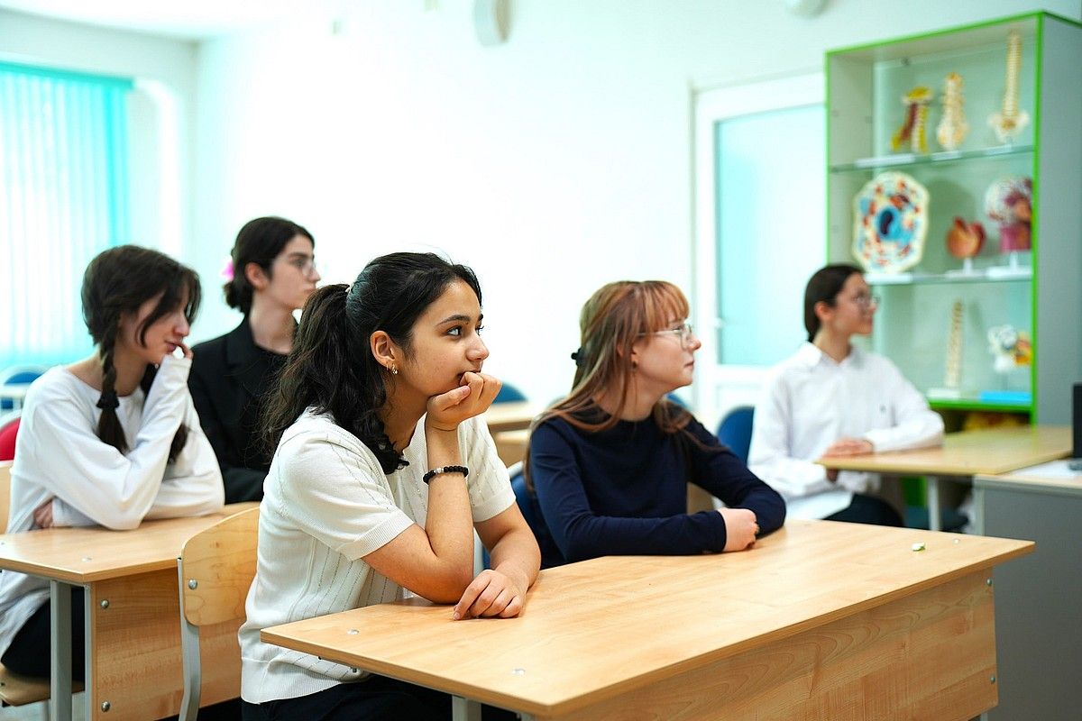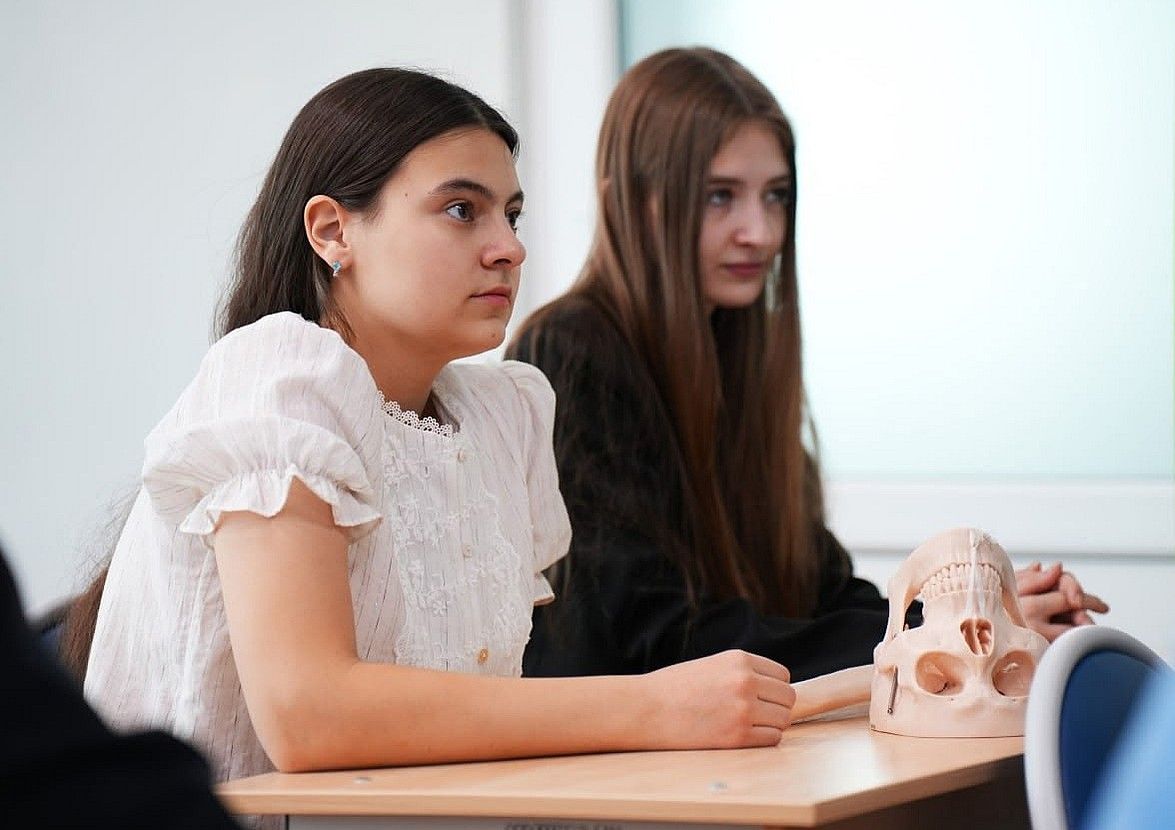 Ребятам были продемонстрированы различные медицинские фантомы, на которых студенты отрабатывают манипуляции. Был показан кабинет анатомии, где учащиеся увидели, какие муляжи и наглядный материал используются для обучения студентов на кафедре.