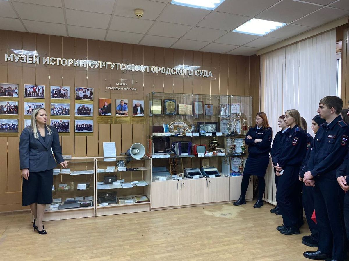 После заседания помощник председатель суда Алексеенко Инна Александровна провела для студентов экскурсию в музей истории Сургутского городского суда. Она рассказала о развитии судебной системы, показала экспонаты, связанные с важными судебными процессами, и ответила на все вопросы студентов. Эта экскурсия позволила будущим юристам глубже понять значимость и традиции судебной власти.
