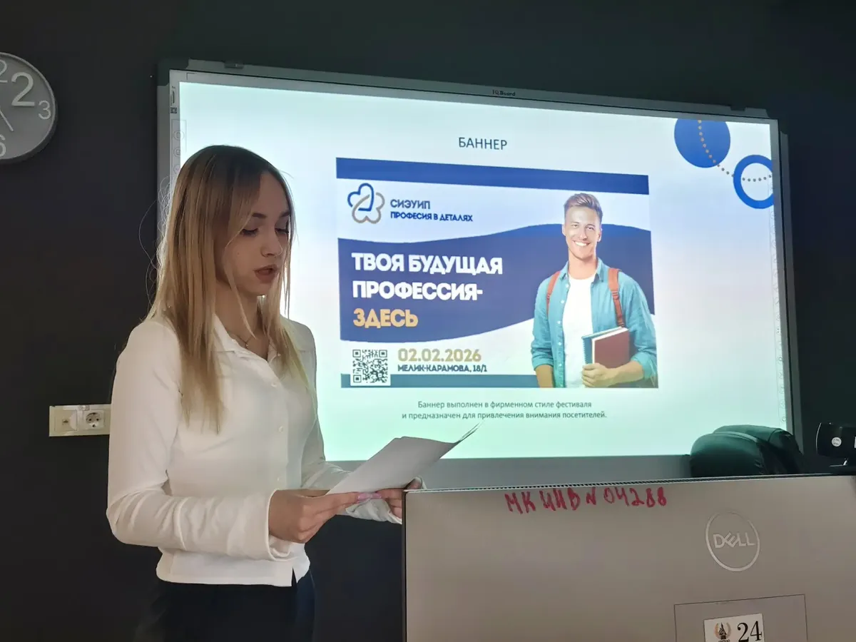 Перед студентами стояла практическая задача: разработать логотип, баннер и ролл-апы для фестиваля «Профессия в деталях».
